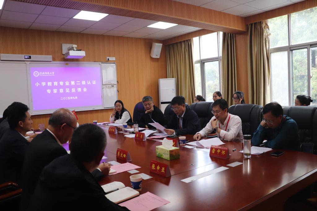 9月20日,小学教育专业认证专家意见反馈会在教七楼301会议室召开。以安徽科技学院原副校长郭亮教授为组长的认证专家组、学校副校长朱晓东、William威廉英国班子成员、专业负责人、认证联络员以及教师代表出席会议。