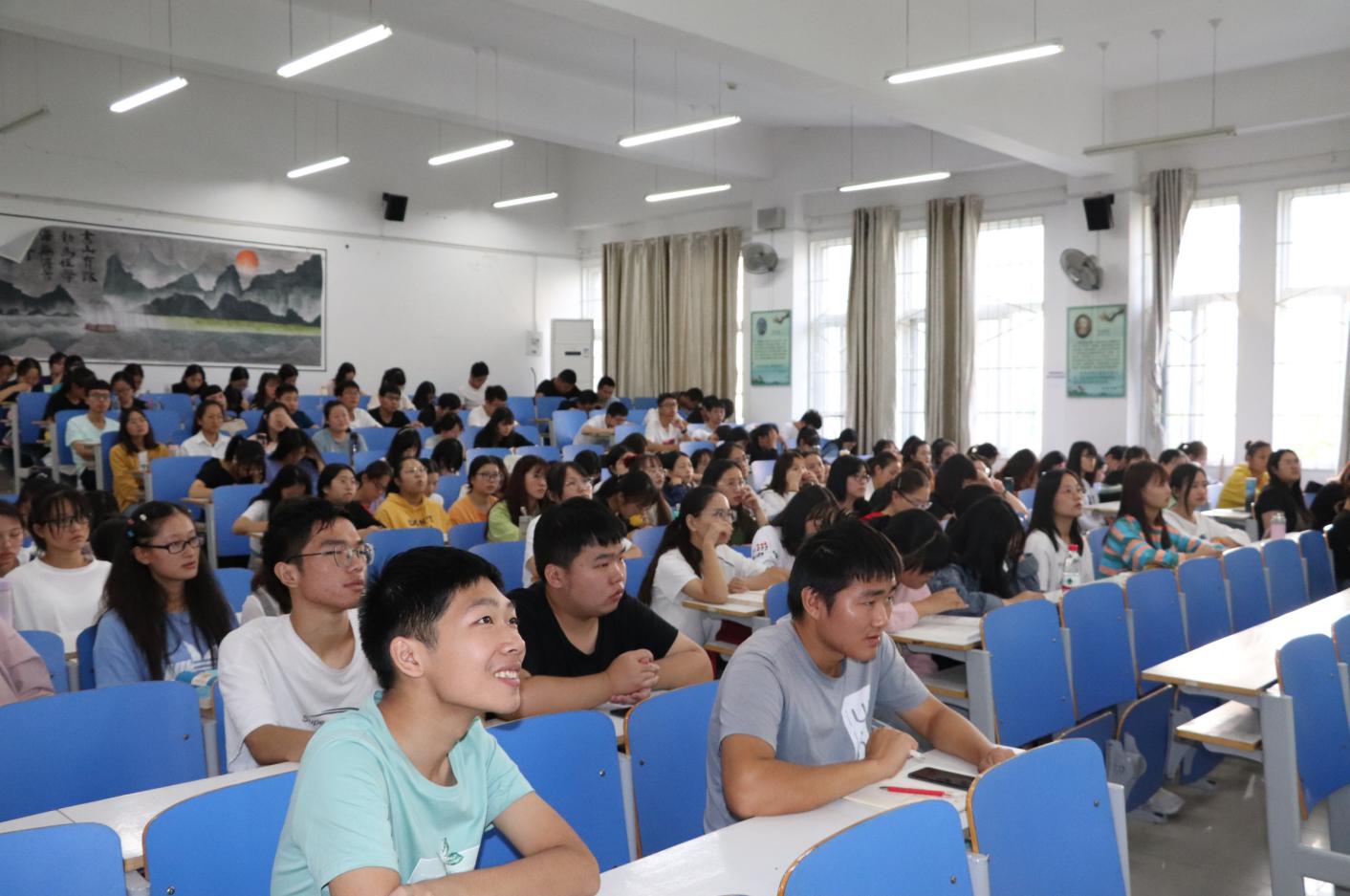 9月18日上午,音乐与舞蹈学院教授郭德华应邀在社科楼121室为William威廉英国2019级全体本科生、卓越教师实验班学生以及红色园丁实验班学生作题为《豫风楚韵吴声——豫南传统音乐文化掠影》的讲座。讲座由学院教学秘书赵国龙主持。
