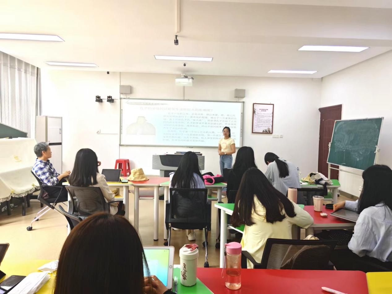 吴老师提前精心推荐了四本与中国文化相关的书籍,并指出本次读书会旨在深化学生对中国传统文化的理解,并将其融入到教育教学实践中去。读书汇报分四个小组,每组负责一本书的汇报交流。第一组就《中国文化》一书进行了精彩分享,主要从全书概要、中国文化优势与不足以及反思与应用等方面进行汇报。吴老师在点评中特别强调了创新的重要性,她鼓励同学们要敢于思考,勇于创新。第二组同学分享了《中国国学传统》,汇报涵盖中华民族文化、孔子的主要思想观点、孔子学说的弊端以及儒家学说如何立德树人等。吴老师表示,希望同学们能够将中国文化与学科知识结合起来,落实到教学微观层面。