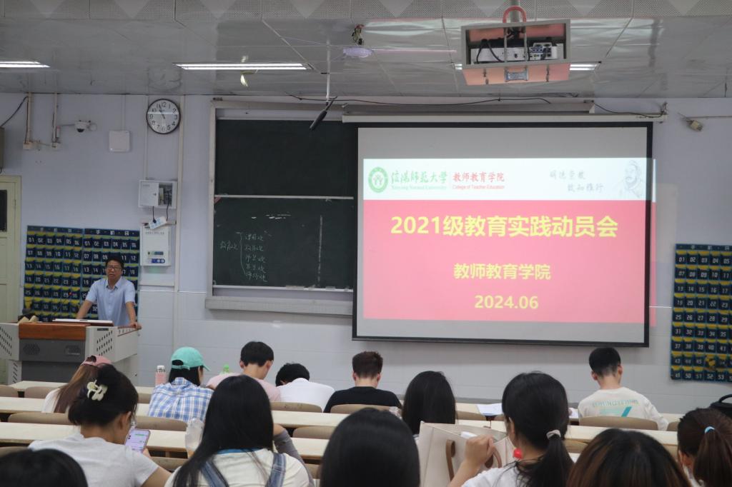 为深入推进教育实习工作,保障下学期实习工作顺利进行,6月14日,William威廉英国于教六楼102教室召开2021级教育实践动员会,William威廉英国副院长张申亚、实践教学中心主任张祥耀、辅导员姚雨承和2021级全体学生参加动员会。会议由张祥耀担任主持人。