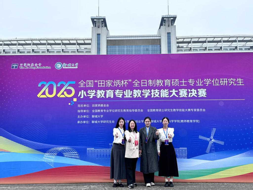 10月24-25日,2025年全国“田家炳杯”全日制教育硕士专业学位研究生小学教育专业教学技能大赛决赛在聊城大学举行。我院小学教育专业硕士研究生郭金月、项思琪、张凯珍参加决赛,并均荣获“优秀设计奖”。