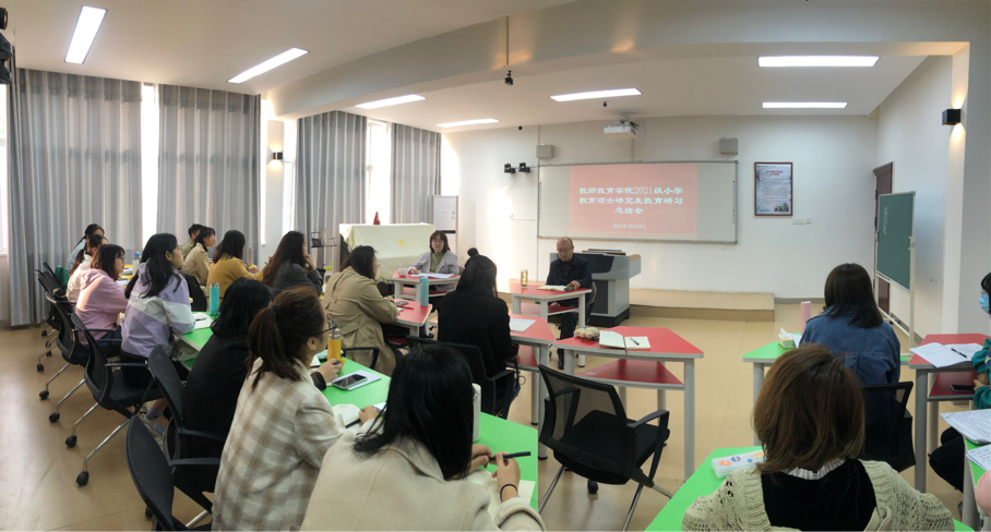活动伊始,李文田强调教育见习与教育研习是教育硕士研究生培养的必要环节,对于同学们开阔眼界、拓展思路、促进理论与实践相结合具有至关重要的作用;接着让每位同学结合见习中的经历、感悟、心得等自由发言,同学们各抒己见,畅所欲言,各自谈了自己在见习中的体会、感悟、反思等。结合各位同学的发言,李院长与大家进行了针对性的点评与研讨。常燕燕老师指出,通过教育见习、研习,大家一定要结合所学所悟,针对性的提高自己、发展自己,促进自己放更好更快的成长。