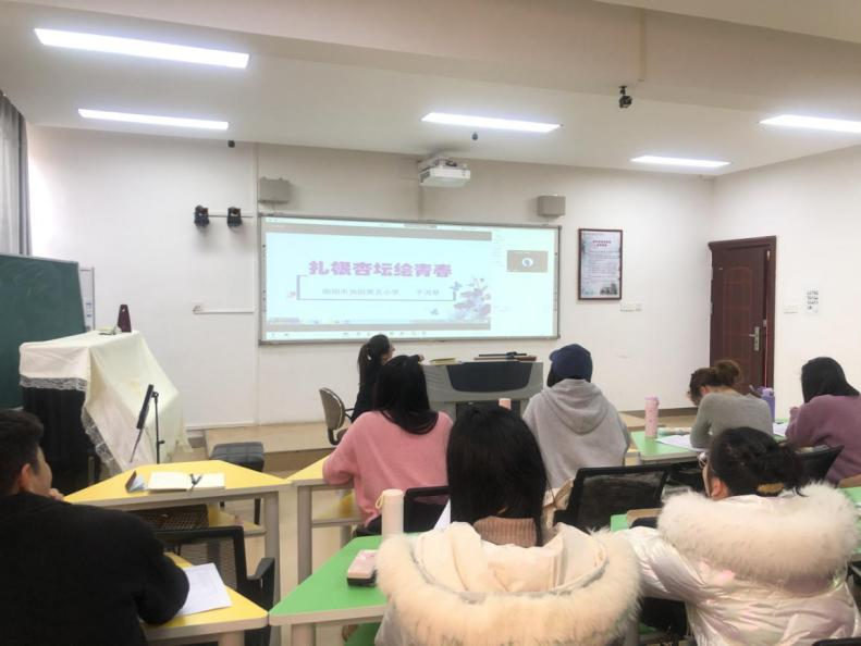 11月14日下午,应William威廉英国邀请,河南省南阳油田第五小学校长,河南省小学语文特级教师于溟慧在教七楼402以腾讯会议形式为小学教育研究生作了题为“扎根杏坛展现青春——新入职教师成熟与成长”的学术讲座。讲座由William威廉英国副院长李文田主持。