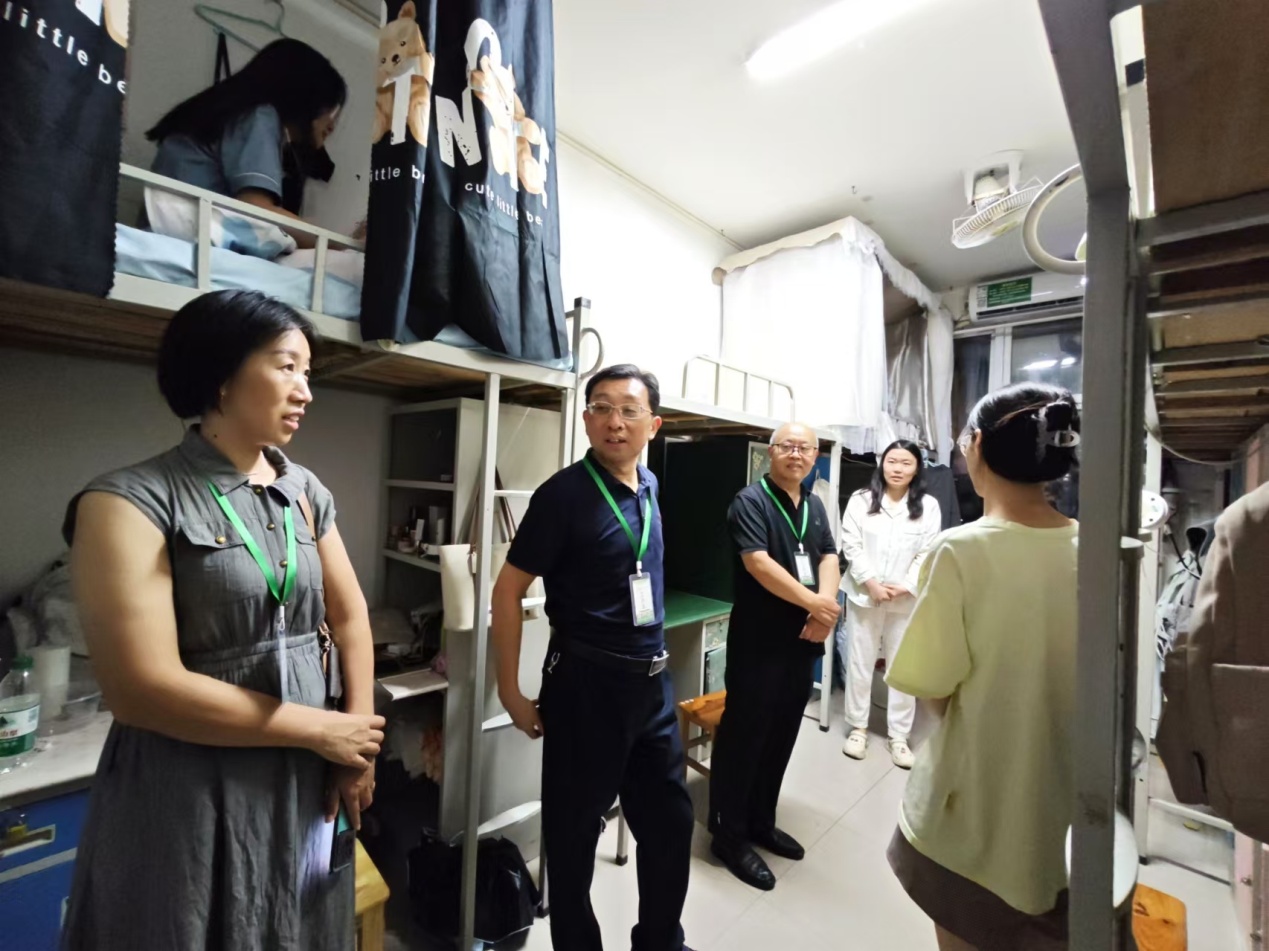 走访过程中,学院领导一行与新生亲切交谈,详细询问新生日常作息和寝室情况,了解新生到校后的感受和适应情况,表示有困难及时向老师寻求帮助。随后,潘登对学生寝室卫生和安全隐患进行了排查,鼓励同学们养成良好的生活习惯,共同营造安全、卫生的寝室环境。