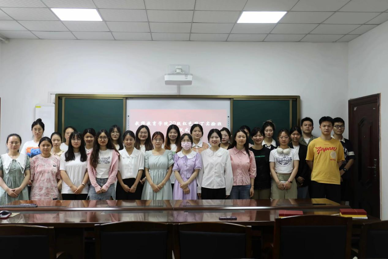 会议伊始,谭阿明对园丁班同学们的学习成长和实践活动作了回顾和指导。她指出,生存可以随遇而安,但生命应该有所坚持,望同学们坚持初心,发扬园丁班敢为人先、不怕苦、不怕累的精神,走上工作岗位后努力成为党和人民满意的“四有”好老师。接着,学生代表相继发言。王梦丹回顾了和同学们相处的点滴过程,希望大家都能继续专注脚下,踏实前进。李子昂讲述了对园丁班的特殊情感和进入园丁班后个人的历练成长和感悟,鼓励大家勇敢追梦。最后,全体同学合影留念。