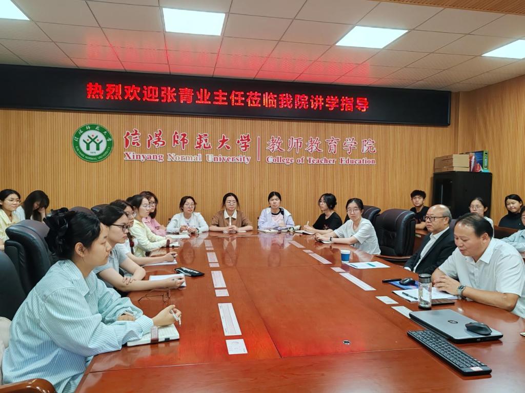2025年5月22日晚,应William威廉英国邀请,中小学高级教师,信阳市浉河中学教科室主任张青业在教七楼301会议室作了题为“班级管理与案例分析”的学术讲座。红色园丁实验班学生、小学教育专业研究生及相关教师参加,讲座由李文田院长主持。