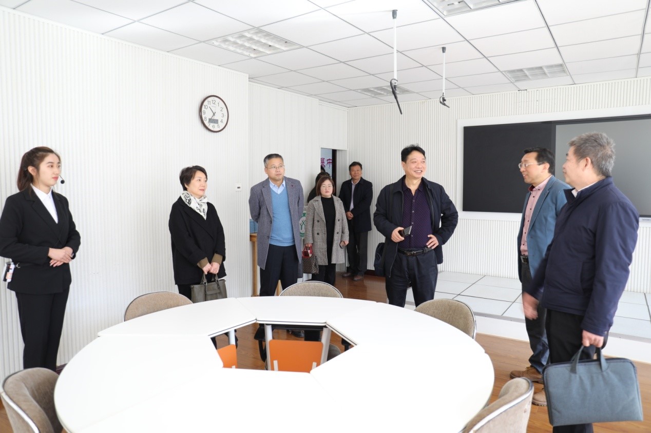 付永昌院长对黄怡俐一行的到来表示热烈欢迎。接着,解说员苏姗带领黄怡俐一行参观教七楼实训室。在教师教育展厅,教务处相关领导从学校发展历史、师资队伍建设、成绩反响等方面重点介绍了学校的教师教育特色;在书法技能实训室与智慧教室,付永昌和潘登围绕教师教学能力的培养、教学成果的反馈以及智慧教室的教学设备介绍了学院为培养全面发展型人才所提供的技术支持;在微格教室,先进的直播录播设备、学生综合实践作品展示获得了参观人员的一致好评。在参观的过程中,双方就教师教育的文化氛围、教学资源的建设、课堂教学质量的提升等问题进行了深入探讨。