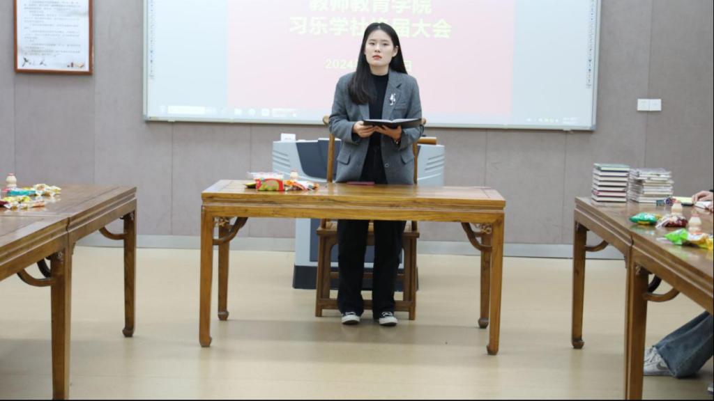 随后,进入换届交接仪式的环节,由甄怡帆宣布新一届社团管理者名单。任命刘滢瑞为习乐学社新一任社长,汪静为新一任团支书。新一届社团负责人表示,将继承和发扬社团的优良传统,不断开拓创新,为社团成员提供更多的发展机会和平台。
