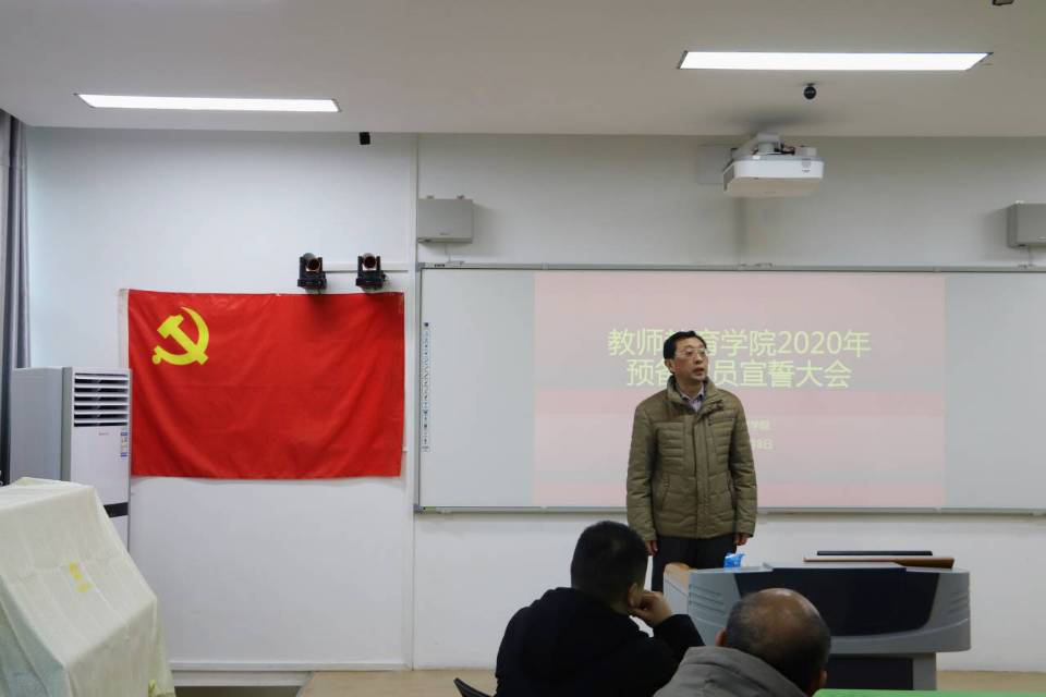 学院党委副书记潘登向新入党的同志表示祝贺,从学习、思想和能力三方面提出建议。一是掌握科学文化知识,不断增长见识,开阔视野,提升在专业领域的深度,展现党员的先进风采,发挥先锋模范带头作用。二是作为新时代的青年,要做马克思主义的信仰者、社会主义的拥护者,努力成为有理想有担当的时代青年。三是要提升自身综合素质,德智体美劳全面发展,做合格的师范人才。