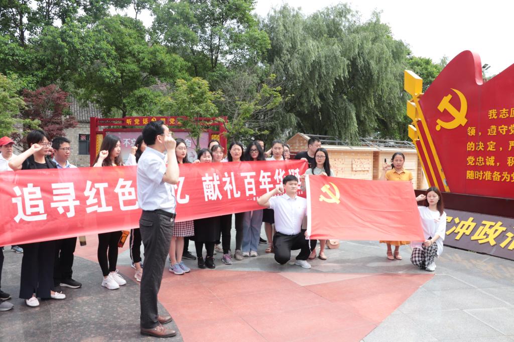 党员同志们来到红二十五军长征出发地的军部旧址—何氏祠,认真聆听了红二十五军的发展历程,瞻仰了从红二十五军走出的百名将军,深入了解了红二十五军漫漫长征路的艰辛历程,同志们都被红军长征的功绩和代价所震撼。走出何氏祠,在何家冲政治文化广场,全体党员同志整齐列队,面向鲜红的党旗举起右拳,在潘登同志的带领下庄严宣誓,铿锵有力的誓词蕴含着对革命前辈英雄事迹的敬畏与缅怀。随后,沿着革命先烈的足迹,重走长征路,共同越过英雄桥、穿过勇士涯、踏过湿地,感受革命前辈不畏艰难险阻、勇于献身的革命精神。最后,大家聚集在红二十五军长征出发集结地——银杏树下,共同追忆艰苦卓绝的革命岁月,缅怀革命先烈的丰功伟绩。潘登在活动过程中指出,学院一直致力于提升基层党组织建设质量,全体党员师生要不断增强守初心、担使命的思想自觉和行动自觉,学习好红色历史,传承好红色基因,发扬好红色传统,将所思所学转化为实践本领,积极投身于工作实际中。