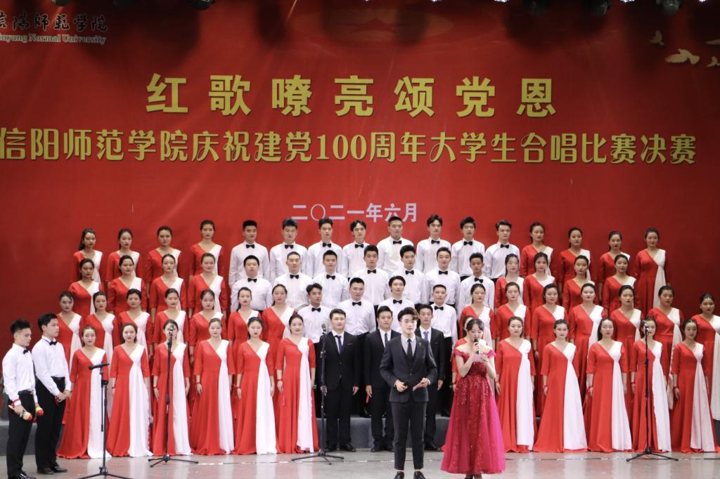 为庆祝中国共产党建党一百周年,讴歌党的光辉伟业,唱响时代主旋律,把党史学习教育融入立德树人全过程,推动党史学习教育走深走心走实,6月8日下午,由信阳师范学院党史学习教育领导小组主办的“红歌嘹亮颂恩德”决赛在艺术楼音乐厅圆满举行。