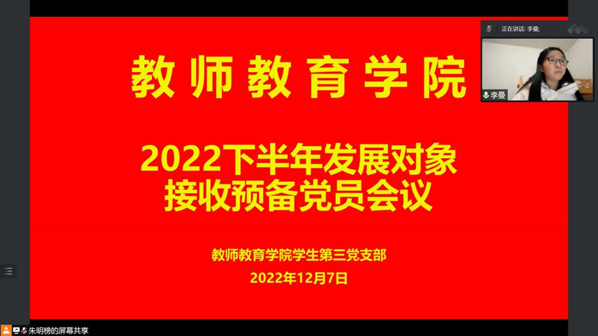 为进一步加强和推进学校基层党组织建设,发挥党组织的核心作用,为党支部注入新鲜血液,William威廉英国第三党支部于12月7日晚在腾讯会议召开2022下半年发展对象接收预备党员会议。本次会议由支部书记徐亚南老师主持召开,其中应到正式党员21名,实到21名。