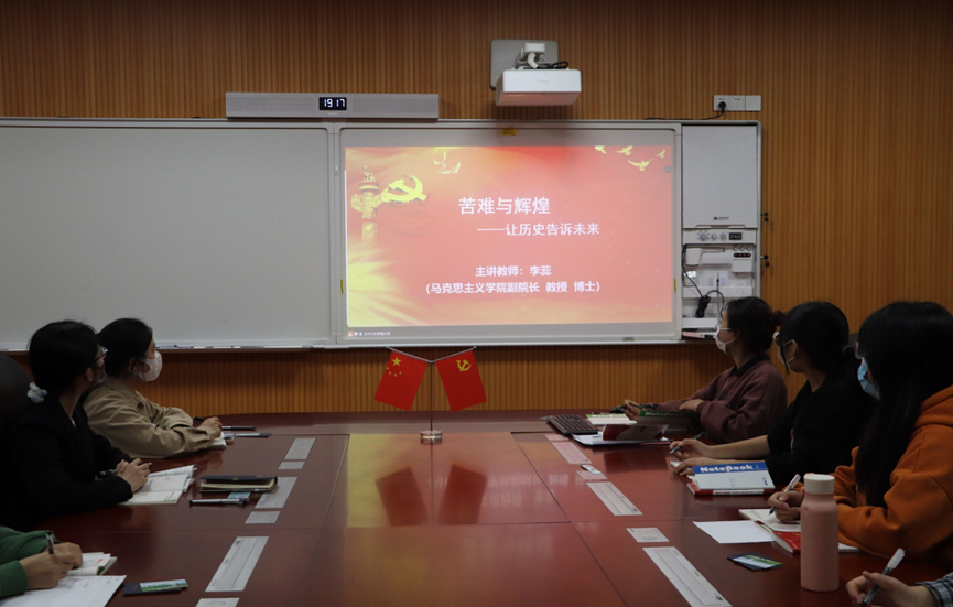 李蕊以“苦难与辉煌,让历史告诉未来”为主题,从三个方面进行阐述。她以中国近代史开端为引入,介绍了中国共产党成立的历史背景,鼓励学生深刻认识中国共产党成立的伟大历史意义。其次,她结合党的二十大精神,带领学员重温中国共产党百年间“四个时期”和新时代的伟大成就,生动地向大家展现了党的光辉奋斗史,引导学生深刻认识中国共产党领导的重要意义。最后,她以三条历史经验总结中国共产党永葆生机活力的基本理论:坚持理论创新,坚持人民至上和坚持党的自我革新,同时,寄语党员发展对象要始终拥护党的领导,坚守党的初心与使命,勇担青年责任,努力成为实现中华民族伟大复兴的先锋力量。