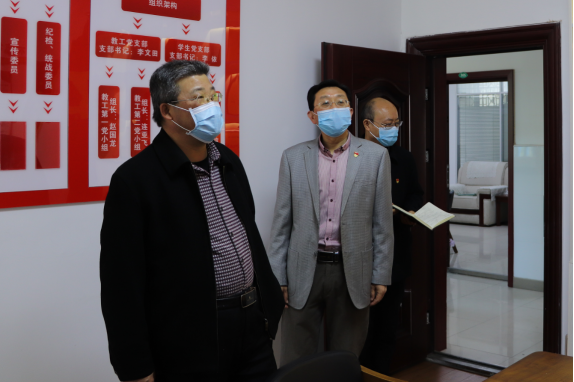 姜兴周一行还查阅了党支部“三会一课”记录本等资料,参观了学院“双带头人”党支部书记工作室、分党校和党员之家。