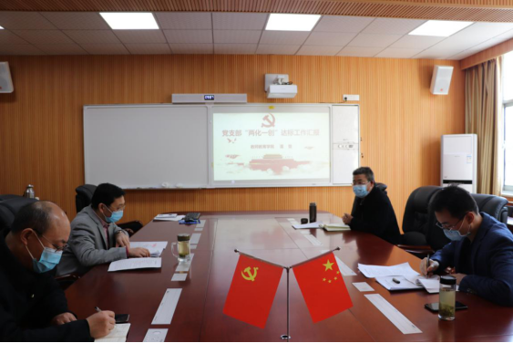 姜兴周对本次“两化一创”达标引领行动验收工作的流程及意义进行简要介绍。潘登对我院党支部“两化一创”达标引领行动工作开展情况、学院党支部建设取得的成绩、存在的问题及改进措施进行了汇报。
