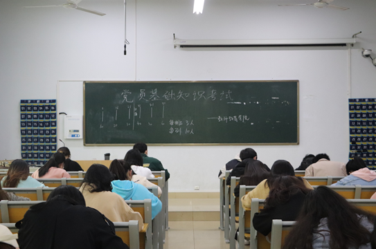 为提升党员政治素质,检验党员理论知识学习成效,确保理论学习“不走形式、不走过场”,3月14日下午,学院学生党支部在教九楼309开展学生党员基础理论知识测试,60余名学生党员参加此次测试。