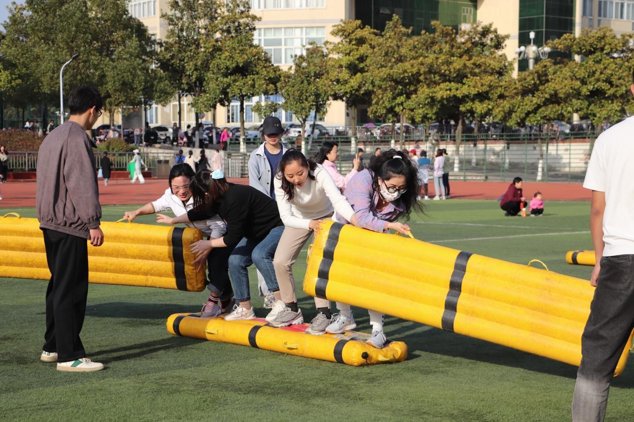 比赛开始前,活动场聚集了参加本次比赛的教师,我院教师积极热身,为本次比赛做充分准备。本次活动围绕团结、和谐、趣味的主题分上下两场展开,在上半场的跳绳活动中,常燕燕、巫梦晓、陈文婧、姜璠、徐亚南老师团结一致,在跳绳中用口号提高默契,相互配合,最终经过激烈的角逐,我院在五人跳绳活动中取得了小组第二名的优异成绩。随着下半场的到来,雷霆战鼓、袋鼠接力、同舟共济、团结协作四个项目有序进行,各个参赛代表队奋勇争先,鼓劲呐喊,现场氛围达到高潮。在雷霆战鼓环节,我院老师依靠坚定的耐力,齐心协力控制平衡;在团结协作环节,我院老师积极探讨比赛技巧,选择比赛站位,发挥团队实力;在袋鼠跳接力环节,老师们又各展所长、分享经验,充分体现了智慧和体力的角逐。赛场上,教师们个个激情饱满,全神贯注,团结协作,全力以赴。本次教职工趣味运动会在一片愉快、欢乐、和谐的气氛中圆满结束。