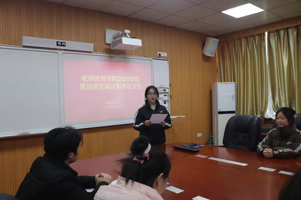 大会以习近平新时代中国特色社会主义思想为指导,旨在全面评估基层团支部工作实效,重点检视各项活动是否契合党的创新理论要求。会议伊始,各班级团支部书记按照年级顺序依次上台述职,2022级本科三班团支书率先发言。各位团支书结合支部实际,从思想引领、组织建设、学风建设、志愿服务、文体活动等多个方面展开汇报,既生动介绍了支部开展的特色活动与取得的亮眼成绩,也直面工作中存在的团员参与度不均、活动创新性不足等问题,同时提出了下一阶段的改进思路与工作计划。汇报过程中,团支书们条理清晰、重点突出,全面展现了各基层团支部一年来的工作风貌与育人成效。待所有团支书述职完毕后,姚雨承老师对各支部工作进行集中点评与细致指导。他结合各支部的述职内容,逐一肯定了大家的努力与成果,同时,姚老师也精准指出了部分支部存在的共性问题与个性短板,针对活动策划、团员管理等方面给出了切实可行的改进建议,并对下一阶段团支部工作提出明确要求。最后,姚雨承老师作总结讲话,对全体团支部一年来的辛勤付出表示感谢。他勉励大家以此次述职评议为新起点,切实团员的先锋模范作用,带领支部团员青年在成长成才的道路上奋勇争先。