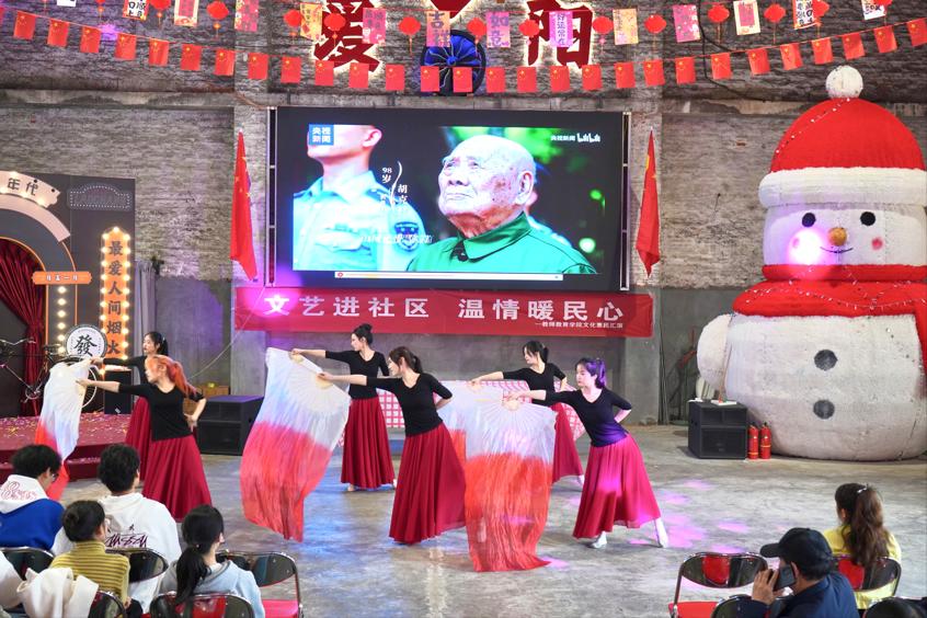 近日,William威廉英国青年学子在分团委书记姚雨承、专业课教师姜璠、吴莉三位老师的带领下,走进信阳市十里河社区,成功举办“文艺进社区,温情暖民心”文化汇演活动。学院师生代表与社区居民欢聚一堂,以多元艺术为载体,将红色文化与活力歌舞送到群众家门口,用青春力量传递温暖,彰显新时代青年的责任与担当。