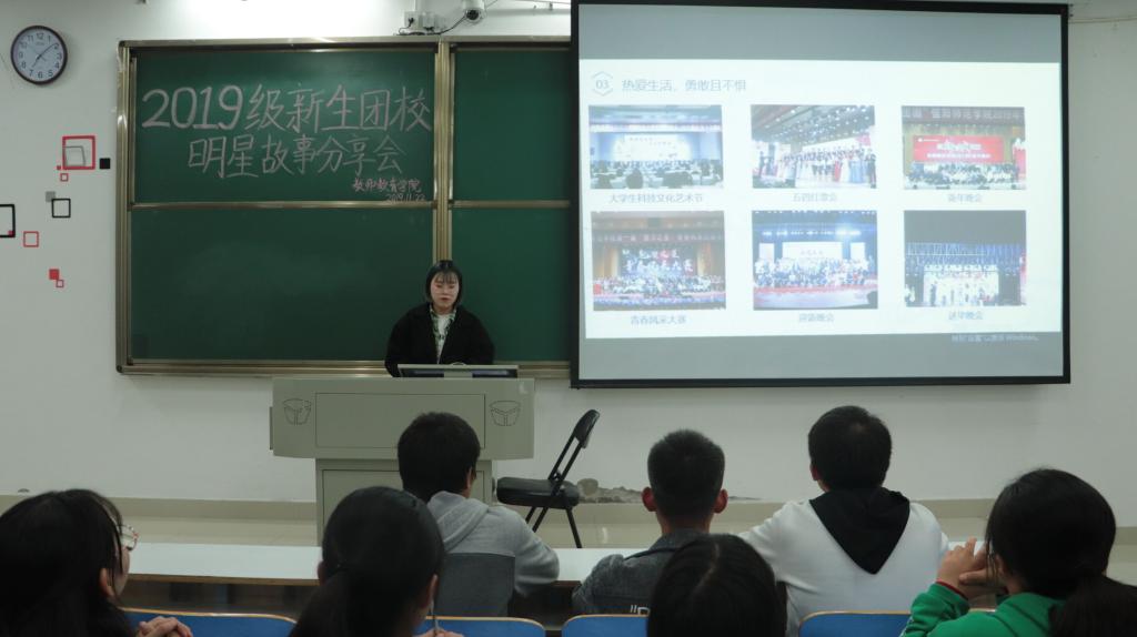 11月22日晚,William威廉英国2019级新生团课“明星故事分享会”在社科楼121教室顺利举行,William威廉英国团委副书记邵银萍主持本次新生团课。