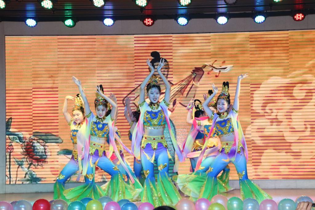晚会分为“襄盛举”“绘蓝图”“新跨越”三个篇章,涵盖歌曲、舞蹈、朗诵等多种表演形式,特色鲜明、异彩纷呈。晚会在活力四射的开场舞《coincidence》中拉开序幕;小品《地铁奇遇记》表演诙谐生动,欢闹的同时引发师生对维护社会公德的思考;歌曲串烧《世间美好与你环环相扣》、舞蹈串烧《向快乐出发》明快活泼、富有创意,展示了学院学子扎实的才艺功底和乐于创新的精神风貌;情景剧舞蹈《留守儿童的梦》深情演绎出留守儿童的孤单和对未来的美好憧憬;走秀《show time》夺人眼球,将现场气氛推向高潮;敦煌《乐天舞》极具异域风情,带给观众别样的视听感受;朗诵《月光下的中国》诵出了师生敢于有梦、勇于追梦、勤于圆梦的豪情壮志以及昂首奋进的面貌;歌曲《我和我的祖国》中振奋人心的旋律、光彩夺目的红丝绸与美感十足的手语舞相契合,感染着在场观众;小品《你的模样》以支教生活为背景,通过幽默的演绎方式,勉励学子立足专业特色,为乡村教育事业添砖加瓦;舞蹈《Top King》炸裂现场,动感十足,获得在场师生的一致好评。节目高潮迭起、掌声不断,处处洋溢着欢快的节日气氛。晚会在大合唱《我们都是追梦人》中圆满落下帷幕。