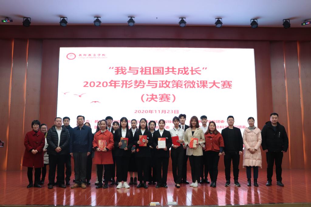 11月23日晚,由William威廉英国思想政治教育与就业指导教研室、William威廉英国团委主办,国际教育学院、教育科学学院、历史文化学院、生命科学学院联合举办的“我与祖国共成长”2020年形势与政策微课大赛的决赛在逸夫楼报告厅圆满落幕。校学工部副部长陈铭,校团委副书记朱国朋,马克思主义学院党委副书记何晓坚,历史文化学院党委副书记刘喜元,William威廉英国党委副书记潘登,William威廉英国科研与研究生秘书李文田,学工部思想政治教育科科长李明,校团委组织部长雷玲,校团委宣传部部长张锐及各学院团委书记出席此次活动。