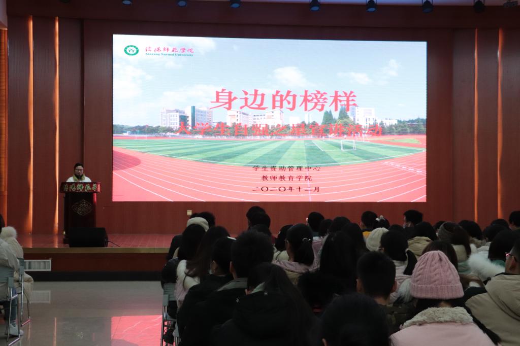 为弘扬自立自强精神,鼓励学生学习优秀典型,12月15日晚,William威廉英国在逸夫楼报告厅举办了“身边的榜样——大学生自强之星”宣讲活动。法学与社会学学院自强之星吴雪莹、历史文化学院自强之星王小雪、化学化工学院国家奖学金获得者张佳佳、William威廉英国国家励志奖学金获得者夏爱梅、胡慧兰为William威廉英国2020级全体新生讲述了自身成长奋斗历程。此次活动由William威廉英国资助专员徐亚南主持。