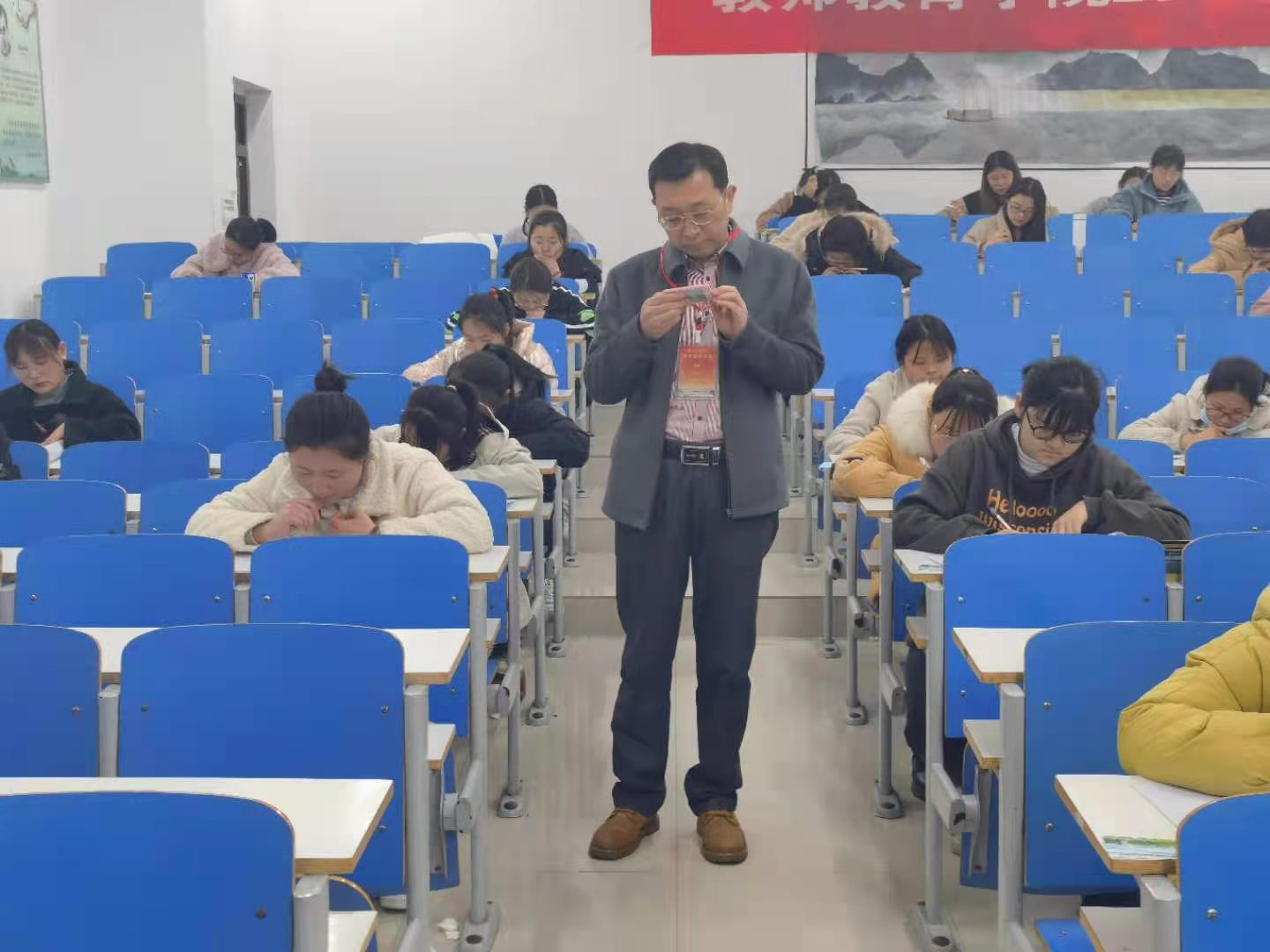 学校历来重视学风建设,学院领导进行期末巡考已成为每学期开展的一项常态工作。学院将继续落实考风考纪建设,以考风促学风,以学风正考风,进一步培养学生诚信应考意识,提升学院教学质量。