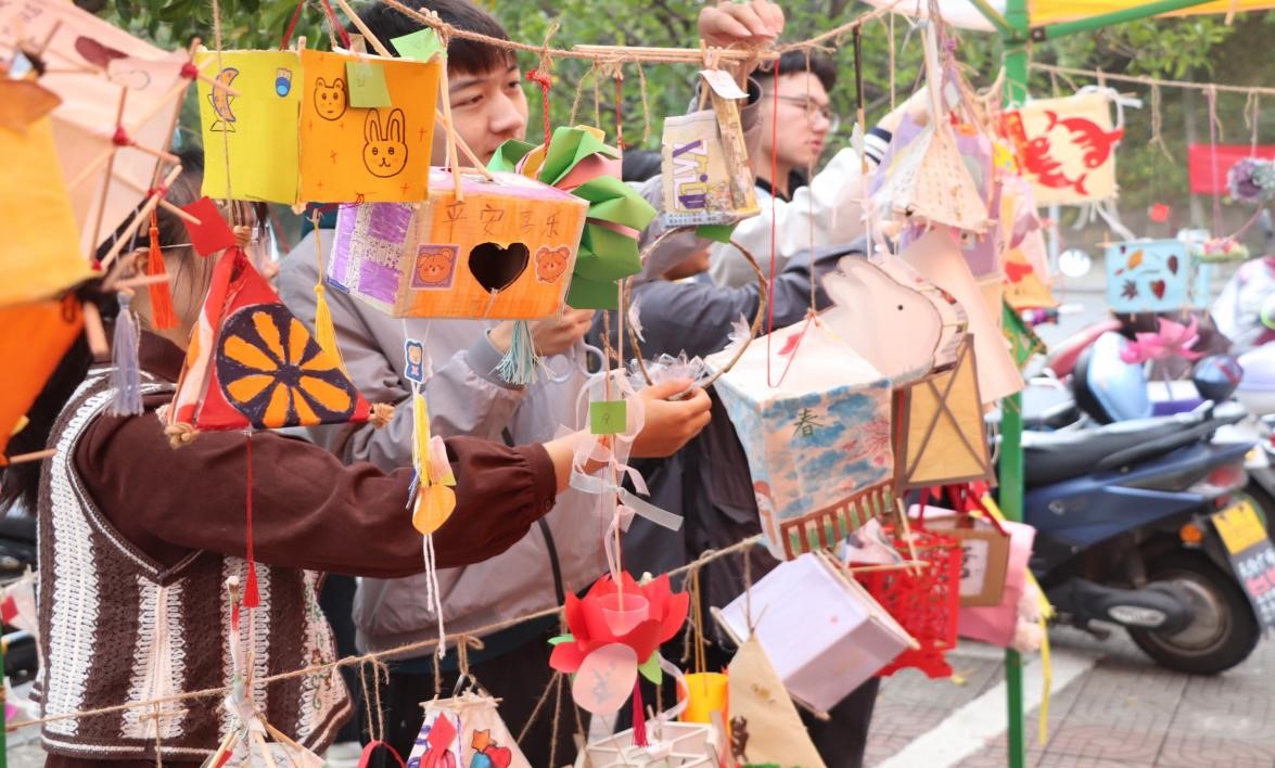 活动在八餐小广场举行,活动伊始,志愿者介绍了花灯的传说,极大地调动了大家的积极性。随后,学生们发挥自己的想象力,从提供的废旧物品中挑选自己喜欢的材料进行创作。选图、构思、裁剪、粘贴......学生们互相交流研究,相互分工制作灯笼,通过一步步的搭建、固定、组装,在欢声笑语中,一盏盏形状多样、色彩绚丽的花灯在学生手中诞生了,从一盏盏灯前走过,传统文化的气息扑面而来。同学们都兴高采烈地拿着花灯进行拍照,场面温馨而幸福。随后,我院组织评委进行投票,评委们以丝带作为票根,选择自己满意的花灯进行现场投票,经过工作人员认真核查,最终确定曹佳琳、建连芳二人获得一等奖,史瑞丽等六人获得二等奖,付嘉茵等九人获得三等奖。