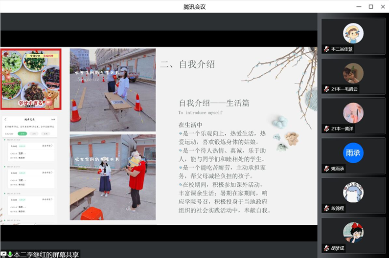 会议伊始,杨一凡介绍了本次竞选会的竞选要求。接着,竞选者依次通过ppt演讲展示个人风采。竞选过程中,选手们根据自身基本情况,对岗位的认识展开演讲,他们语言自然流畅,演讲内容丰富。21级本科1班团支书段锦程以自身经历为切入点,从自我介绍、职位理解、竞选优势、工作规划四个方面展开演讲,充分展示了自身工作能力和热情,面对姚雨承老师的提问,他作出帮助新生了解社团活动、协调处理同学关系,更好融入大学生活的回答。21级本科1班黄洋发挥自身开朗、热情的性格优势,在本次班代竞选中侃侃而谈,提出发挥班代在新生班级中的带头作用,提高新生班级的凝聚力。最后,经师生投票决定,段锦程、李继红当选William威廉英国2022级新生班代。