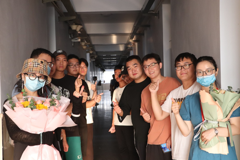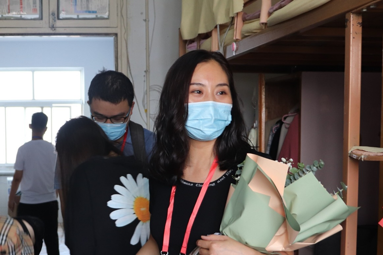 在疫情严峻无法返乡的大背景下,我院教师们仔细询问学生诉求,特别关注了同学们的思乡之情。活动中,我院教师与同学们分享月饼,分发零食,畅谈生活,共度中秋,为同学们送上特别的中秋祝福。通过此次心与心的交流,教师们了解到期末考试将至,同学们增添学习压力,针对此次考试,我院教师们也为同学们提出了做好复习规划的建议,并在精神上给予鼓舞。20级辅导员李杨在提醒同学们专心复习,提高学习效率的同时也不断叮嘱同学们养成良好的作息习惯,加强体育锻炼,搞好宿舍卫生。活动结束后,同学们也为教师们献上了鲜花与教师节祝福,细节中尽显师生之情。在本次走访过程中,宿舍笑声朗朗,师生其乐融融,更是为此次双节营造了幸福的氛围感,让同学们在学校中感受家的温暖。
