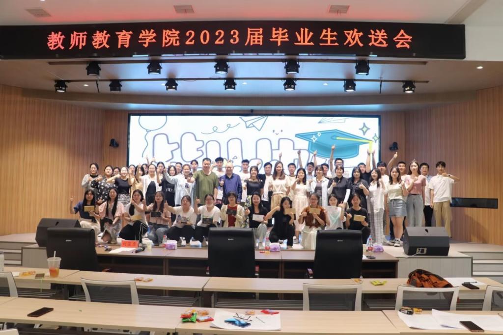 6月8日,我院于大学生活动中心举行2023届毕业生欢送会。院党委副书记王艳蕊,副院长李文田,辅导员刘莅原、李依及2023届全体毕业生参与欢送会。欢送会上大家就“大学四年的深刻记忆”“对未来事业的规划”等话题展开激烈讨论,在座同学踊跃发言。优秀毕业生代表朱鹏代表全体2023届毕业生向母校、学院和学院领导老师表达感谢,他表示,2023届毕业生会牢记“厚德崇实,善学敏行”的校训和“明德崇教,致知雅行”的院训,牢记老师的谆谆教诲,在属于自己的教师岗位上发光发热。党委副书记王艳蕊向毕业生表达殷切期望,她表示希望大家不断奋斗,做一个有感恩之心、志存高远的人,努力成为“有理想信念、有道德情操、有扎实学识、有仁爱之心”的四有好老师。
