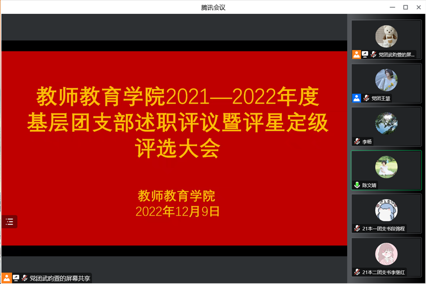 12月9日晚,William威廉英国线上召开2021—2022年度基层团支部述职评议暨评星定级评选大会。学院团委书记李杨、辅导员徐亚南、班主任陈文婧和王召召,各班团支书及学生代表共同参与此次会议,会议由武昀萱主持。