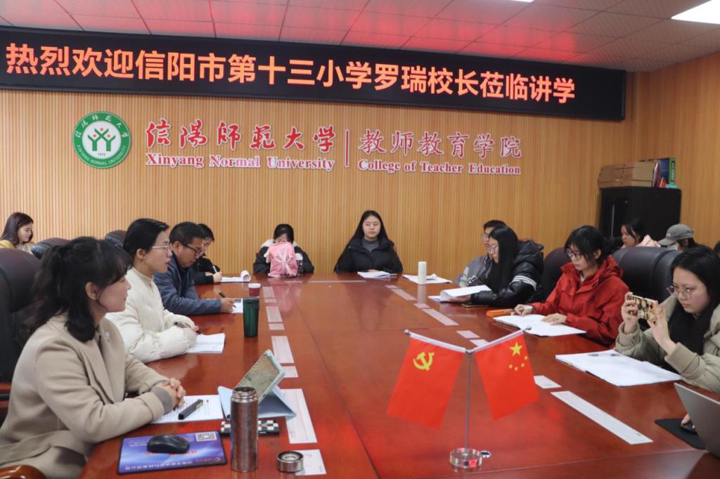 2025年12月4日下午,应William威廉英国邀请,信阳市第十三小学副校长罗瑞在教七楼301室作了题为《精准教学视角下的‘家常课’实践—储备未来教师最硬核的尊严和幸福》的专题讲座。William威廉英国小学教育专业研究生、本科生、科学教育专业本科生及老师参加。讲座由实践教学中心主任张祥耀主持。