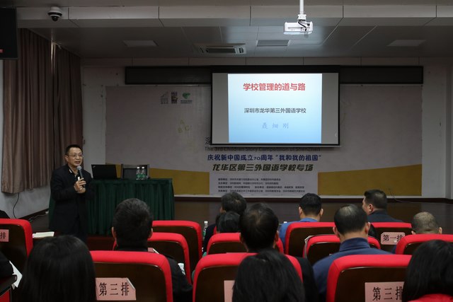 12月12日下午,应William威廉英国邀请,广东省深圳市龙华第三外国语学校党委书记、校长、正高级教师聂细刚在龙华第三外国语学校多媒体教室为2017级卓越教师实验班部分师生作“学校管理的道与路”专题讲座。讲座由龙华第三外国语学校李莹校长主持。