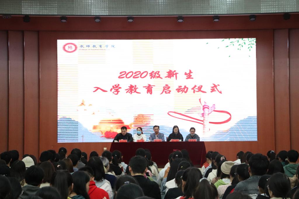 启动仪式过后,潘登作为主讲人,围绕“学校文化、学习教育、大学生活”三大板块,结合国家新形势、新要求,从学校、学院和学生三个方面为新生讲了入学教育第一课。学校方面,以校训“厚德崇实、善学敏行”为主题,详细介绍了学校定位、目标、使命、理念、战略及文化,同时展示了学校“一山为根基,一湖一河为两翼”的三大校区建设蓝图,充分展现了学校综合实力和社会影响力的提升;学院方面,潘登着重讲述了学院师资力量和办学条件的优势,并表明学院成立旨在整合教师教育资源,深化教师教育改革,创新教师教育人才培养模式,打造教师教育特色品牌;学生教育方面,他强调要注重学生德智体美全面发展,关注学生人身财产、心理、思想等各方面的安全,并从学习专业知识和提升综自身能力方面对新生提出更高要求。