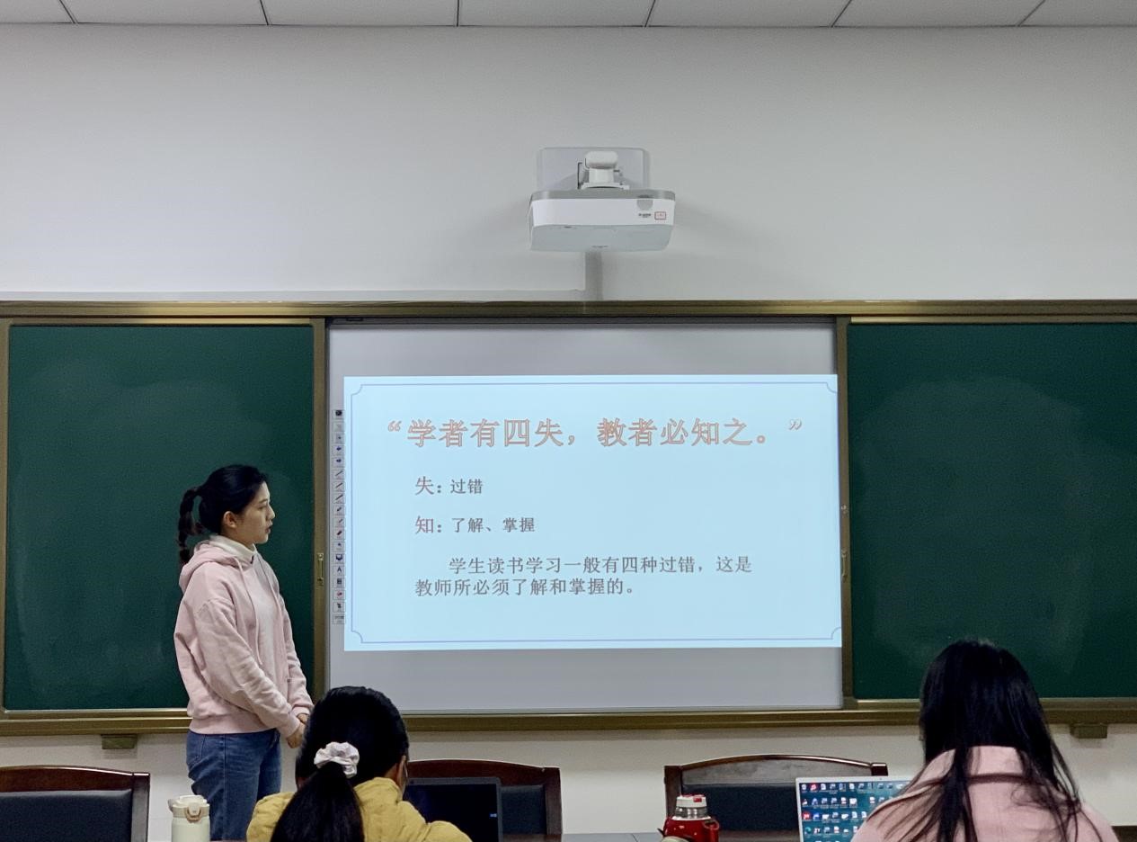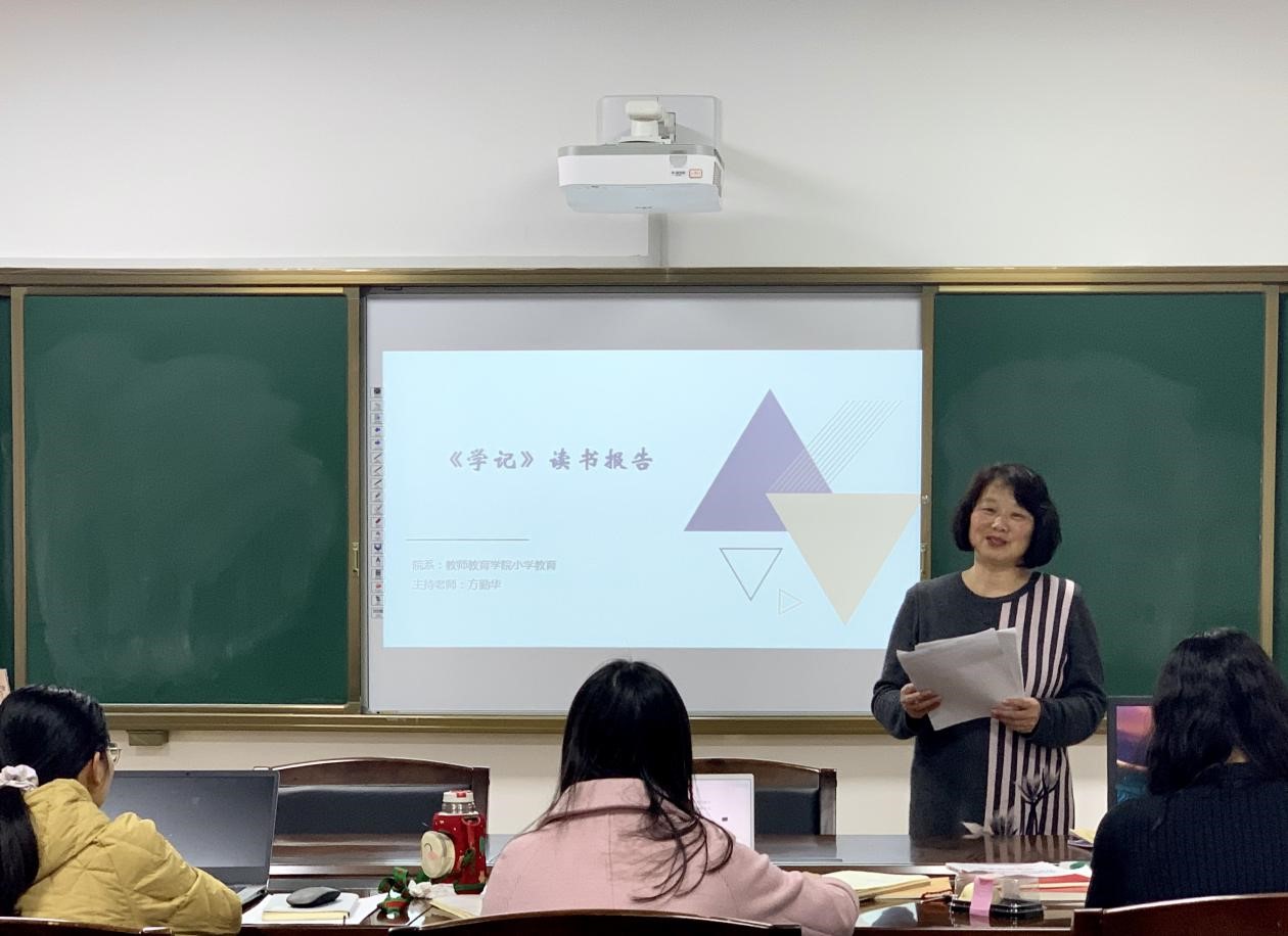 之后,八名研究生以小组的形式分别做了读书报告。郝沁雪、赵芯悦、王棋磊组成的第一组对“和易以思、长善救失、罕譬而喻”进行了描述性阐释;李轩娇、刘金金组成的第二组选取“敬孙时敏”,结合当代教育现状,揭示了对当代教育具有的启发意义;伍慧、兰祎、摆超组成的第三组围绕“教之不刑、教所由废、和易以思”分享了自己的理解与收获。每个小组汇报结束,方教授都对该组同学的汇报进行了针对性的深入点评。