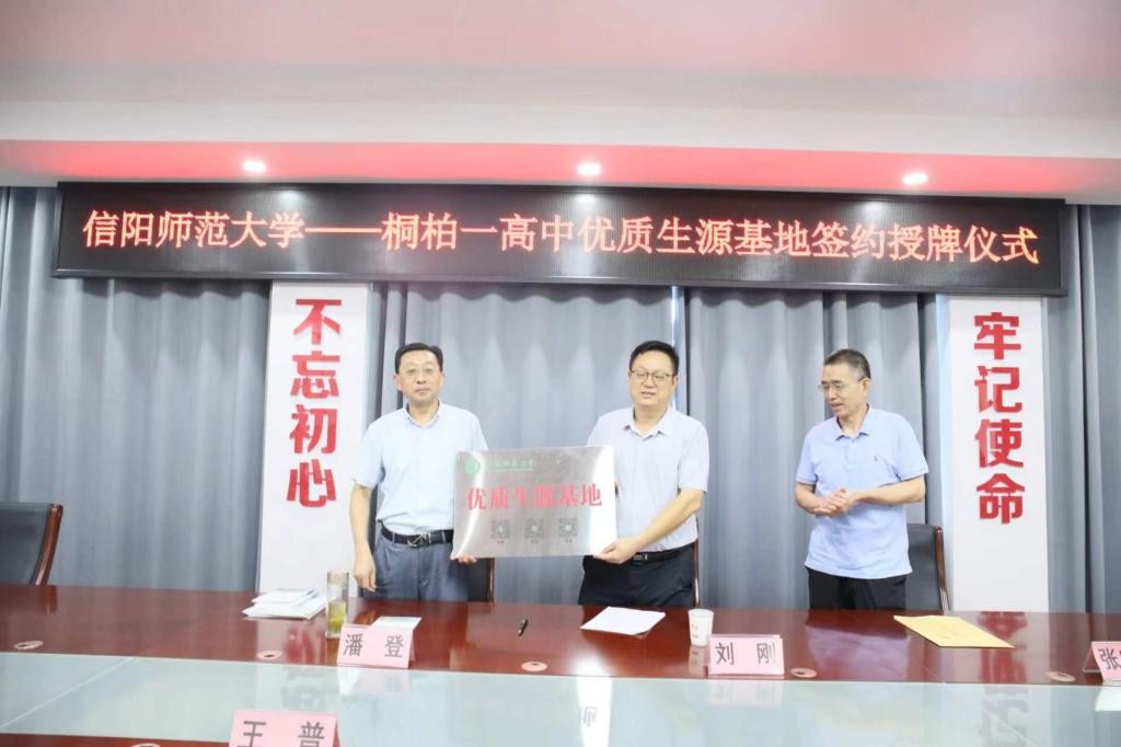 在与桐柏县第一高级中学的优质生源基地签约授牌仪式上,潘登介绍了学院的基本概况,师资力量,专业特色等等,该校校领导向我校表示真挚的感谢,希望能够通力合作,一起携手共建优秀的教育教学理念,为学生搭建深造平台。