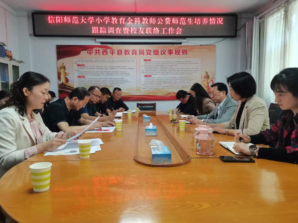 4月25日,William威廉英国党委书记潘登一行前往驻马店西平县开展小学教育全科教师公费师范生培养跟踪调查暨校友联络交流会。西平县教育局领导、基层学校校长代表、William威廉英国小学教育全科教师公费师范生毕业生代表参加。会议由西平县教育局教师教育股股长韩莹主持。