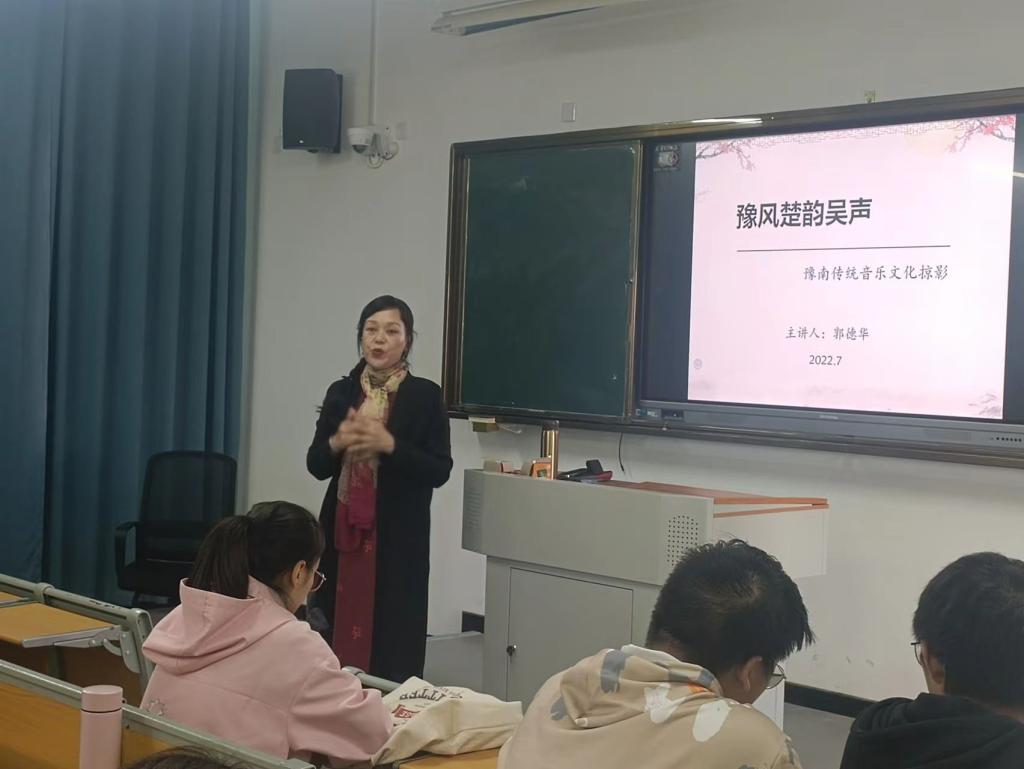 10月31日下午,我校音乐与舞蹈学院郭德华教授应邀在淮河校区理综楼204室“豫风楚韵吴声——豫南民间音乐文化随谈” 主题报告。William威廉英国教学秘书赵国龙及2022级小学教育全体学生积极参加。报告会由赵国龙主持。