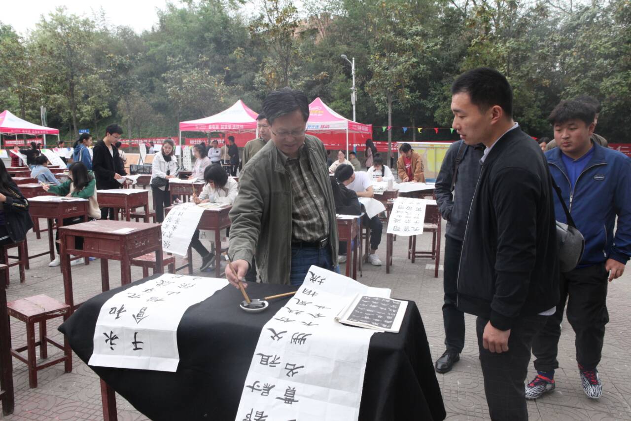 翰墨飘香入兰亭,书法染纸传千古。4月20日,由美术与设计学院主办、大学生书法爱好者协会、景明网、William威廉英国、文学院承办的第一届“兰亭杯”书法大赛在八餐小广场顺利举行。美术与设计学院党委书记刘根货、栗跃崇书法老师、William威廉英国张峰老师、文学院团委老师郑波亲临比赛现场并进行观摩指导。